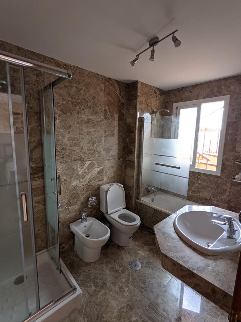 Hlavní ložnice nabízí vlastní velkou koupelnu s vanou a sprchovým koutem, vestavěnou šatní skříň, terasu se schody na střešní solárium a manželskou postel. Druhý pokoj má šatní skříň, vlastní terasu a dvě oddělené postele. Třetí pokoj je dětský s možností rozložení dalšího lůžka pro dvě dospělé osoby. Dětská postýlka je uložená ve skříni v hlavní ložnici. Na chodbě je další koupelna s vanou.